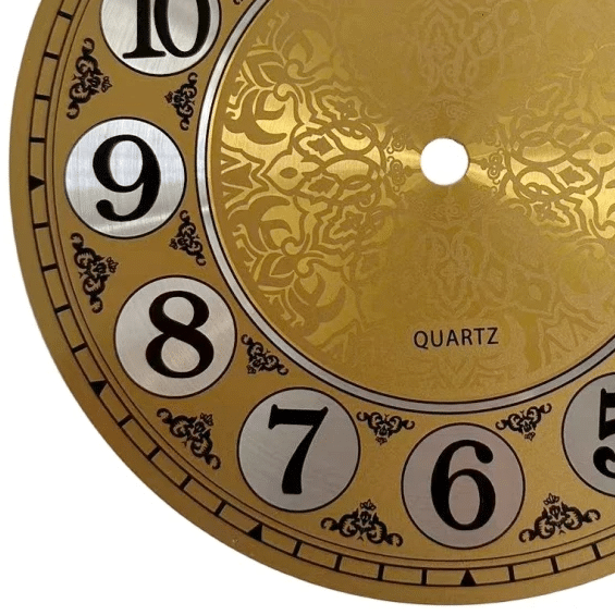 La palette de couleurs de cette horloge, composée d’une alliance subtile de couleur or avec des chiffres noirs sur fond argenté, garantit une lisibilité optimale tout en ajoutant une note raffinée à votre décoration. Si vous souhaitez compléter le look d’une horloge existante ou commencer un projet créatif, ce cadran est le choix parfait.