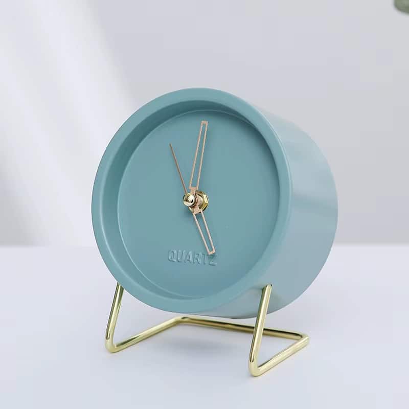 Elle exprime une qualité durable et une esthétique hautement raffinée. Le métal lui confère une stabilité parfaite et un rendu visuel lumineux. Sa surface lisse et ses bords arrondis témoignent d’un travail précis, pensé dans les moindres détails. L’association du métal bleu et des pieds dorés crée un contraste harmonieux qui capte la lumière avec subtilité. Cette horloge est un choix parfait.