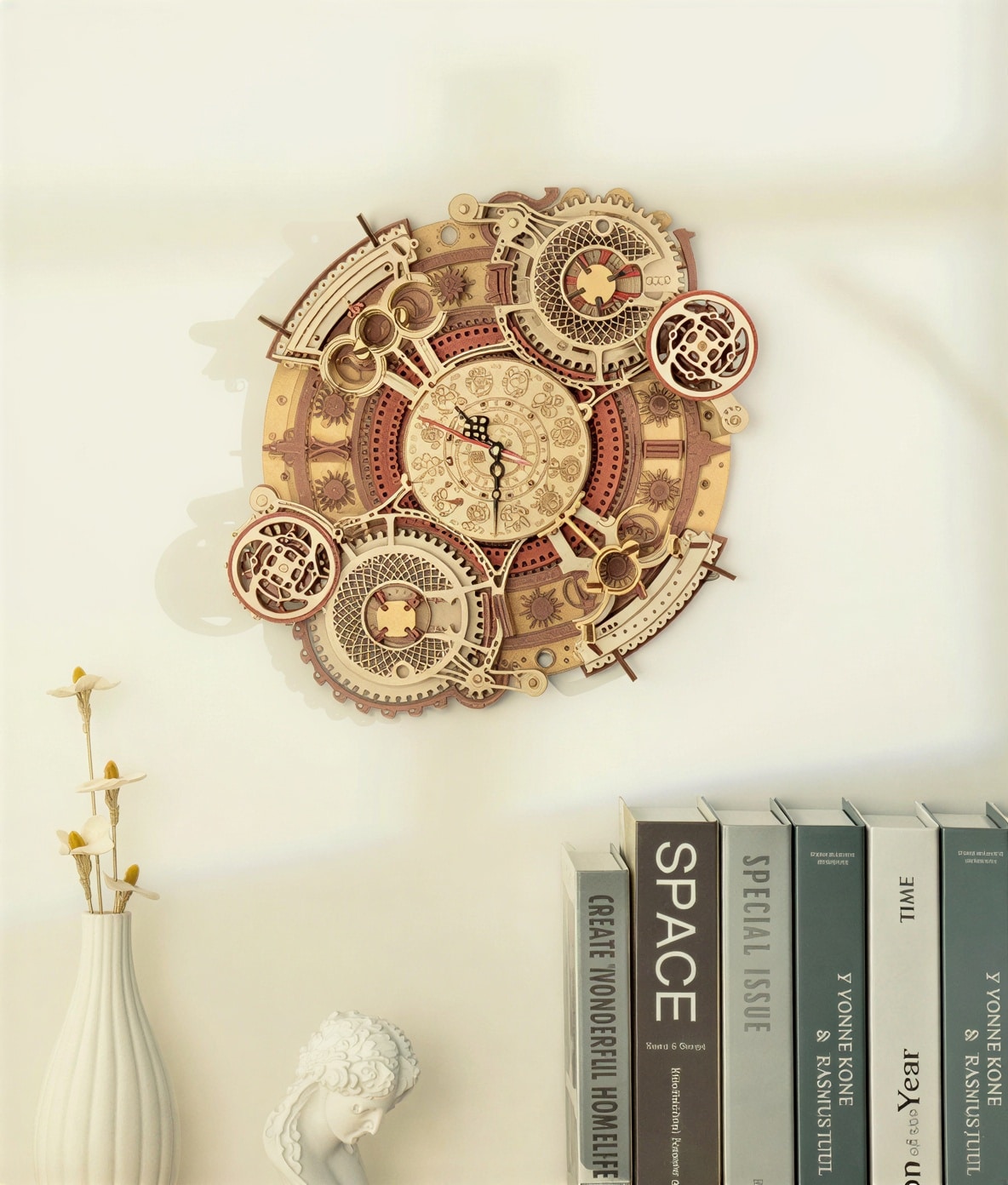 Le regard se pose sur un relief chaleureux, comme un petit théâtre d’étoiles. Avec l’Horloge murale zodiacale à monter soi-même, votre mur gagne une présence unique, entre rêve et précision. Le soir, en rentrant, vous aimez retrouver ses cercles, un cadran zodiacal et des motifs d’astrolabe qui invitent à ralentir. Chaque coup d’œil devient un repère doux, une touche déco qui raconte votre univers. Idéale dans un salon lors d’un week-end à la campagne, près d’une bibliothèque.