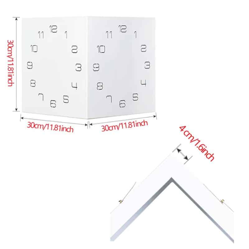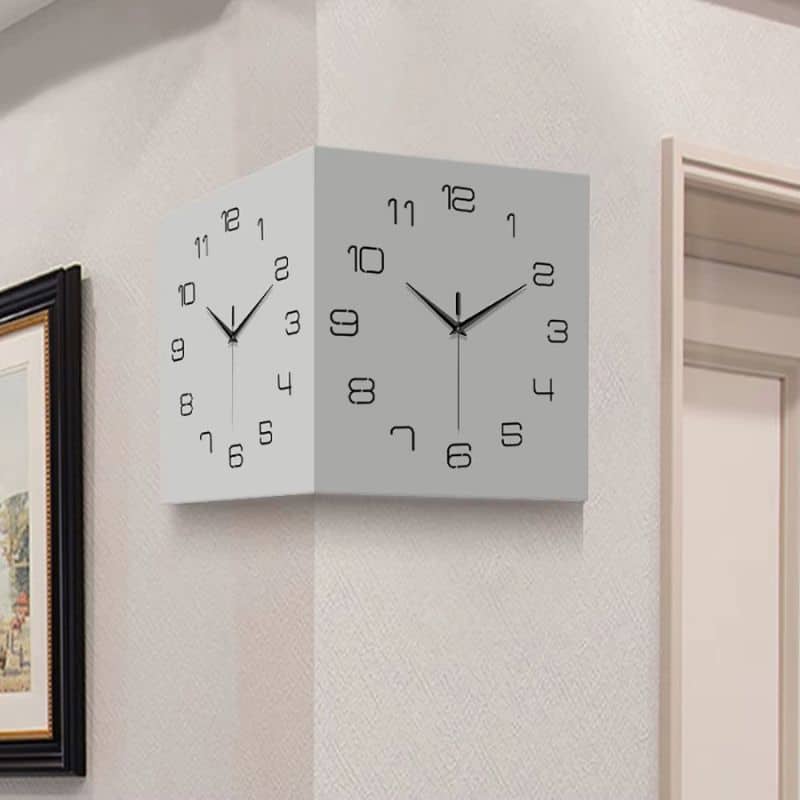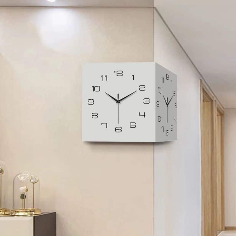 Cette horloge murale d’angle se distingue par sa forme carrée et ses deux faces visibles. Son concept astucieux fait de cette horloge cubique une pièce décorative à la fois pratique et audacieuse, qui structure harmonieusement vos espaces.