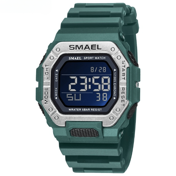 Cette montre numérique est disponible en noir ou vert, offrant une option pour chaque goût. Que vous préfériez une allure classique ou une touche de couleur, cette montre s’adapte à votre style tout en offrant toutes les fonctionnalités dont vous avez besoin.