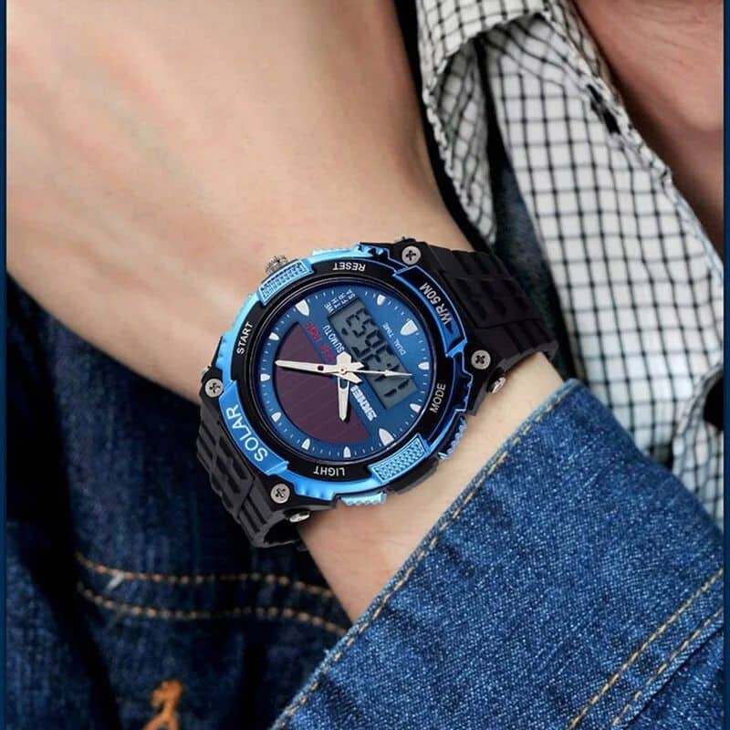 Changez votre quotidien avec notre montre numérique alimentée par l’énergie solaire. Un véritable arsenal de fonctionnalités vous attend dans un design disponible en couleurs vibrantes de bleu et rouge. Dotée d’une luminosité exceptionnelle pour une visibilité optimale, cette montre solaire est conçue pour les explorateurs urbains et les amateurs d’aventures nautiques.