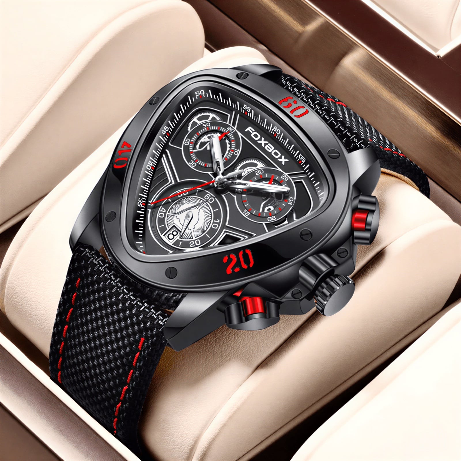 La Montre Chronographe avec Cadran Triangulaire pour Homme donne à votre poignet une présence forte et moderne. En réunion, vous jetez un regard rapide et vous sentez la maîtrise du temps, sans stress. Son style sportif attire les regards, tandis que son allure industrielle renforce votre confiance. Vous profitez d’une lecture claire, d’un geste sûr, et d’une signature visuelle qui vous distingue. Sur une terrasse de café, elle accompagne un jean et une veste sombre.